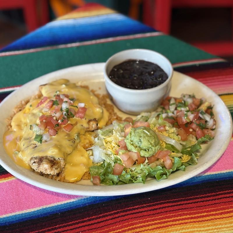 Guacamole salad, one black bean & cheese taco, one cheese enchilada with your choice of verde, ranchera or chipotle sauce, with black beans.