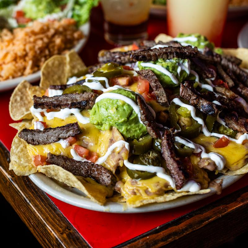 Tex-Mex beans or black beans, cheese, tomatoes, sour cream, guacamole & jalapenos. Available with ground beef, pork, fajita beef, chicken or brisket.