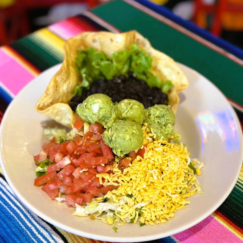 Guacamole salad, one black bean & cheese taco, one cheese enchilada with your choice of verde, ranchera or chipotle sauce, with black beans.